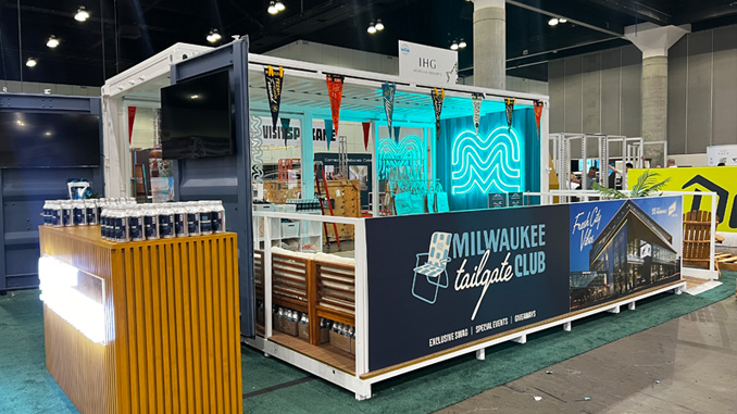Custom Shipping Container Booth for Visit Milwaukee at ASAE 2025